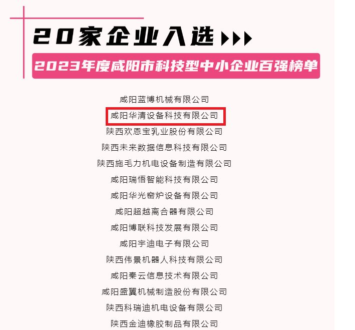 熱烈祝賀咸陽華清設備科技有限公司榮獲2023年度咸陽市科...